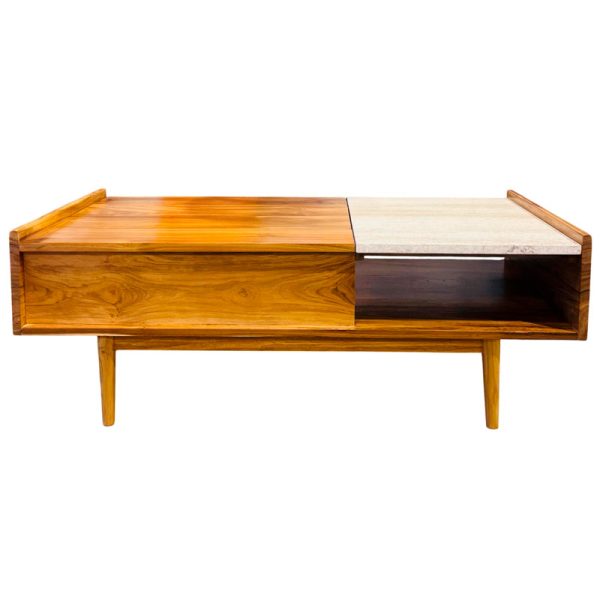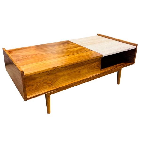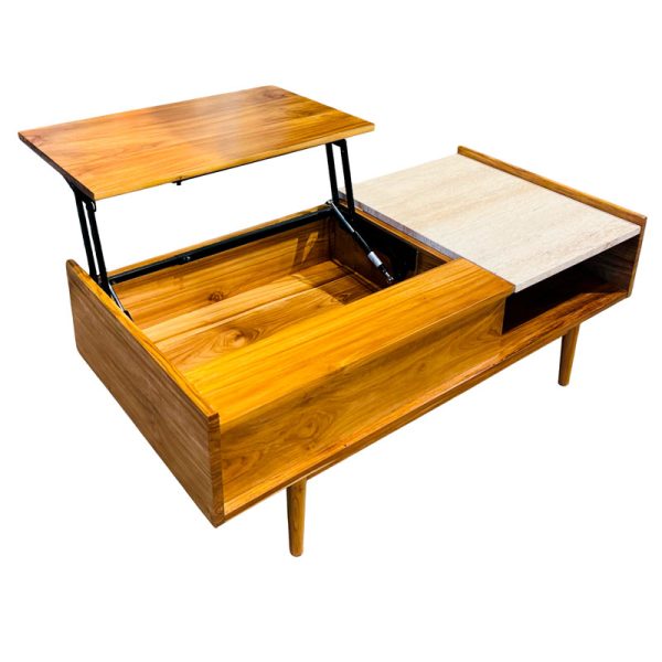 MESA CENTRO EINSTEIN TECA/ TRAVERTINO PERUANO120X60X43-55 CMS /SELLADOR